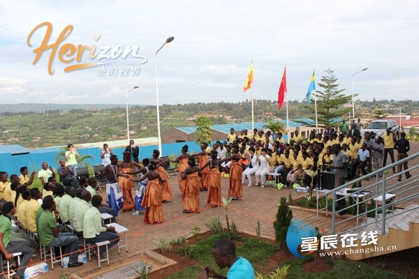 (在卢旺达基加利的工厂园区,工人在进行圣诞节表演。)