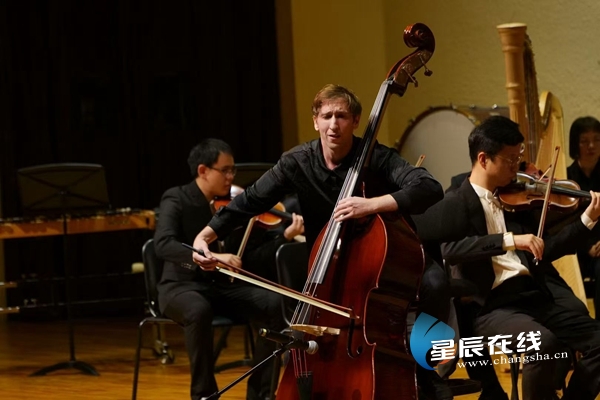 星辰在线9月8日讯(通讯员 李鑫章)近日,湖南音乐厅华灯璀璨,座无虚席。“古典与浪漫的对话”交响音乐会在此上演,青年指挥家刘峻玮执棒湘江爱乐乐团,携手小提琴家安德鲁·比尔(Andrew Beer)、低音提琴家约翰·米特斯(John Mietues)、钢琴家薛泽泽三位杰出音乐家,以精湛技艺和深厚艺术修养,为观众呈现了一场融汇东西、穿越时空的音乐盛宴。