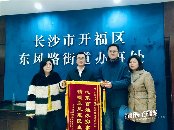 (公司为街道送来锦旗,感谢街道对公司成立所做出的真诚服务。图片由 东风路街道 提供)
