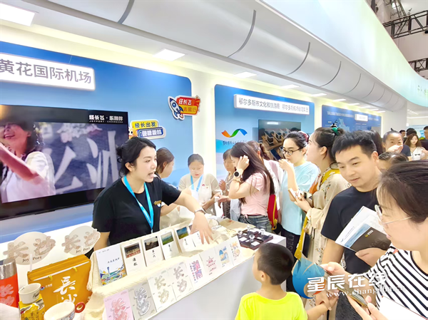 步入长沙机场展台,“辣么好玩”设计元素瞬间拉近与观众的距离。动态大屏上,岳麓山的层林叠翠、橘子洲的朝气蓬勃、城市里的烟火气息,勾起观众对三湘大地的向往。实物展示区,特色文创整齐排列,工作人员从航线优势聊到文旅攻略,让观众未到湖南先“感”湘情。展台一侧,茶颜悦色现场调制的一杯杯幽兰拿铁,刚递出就被抢空……丰富的场景化展示、接地气的互动体验,让长沙机场展台人气居高不下。