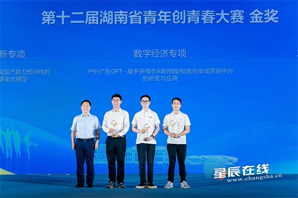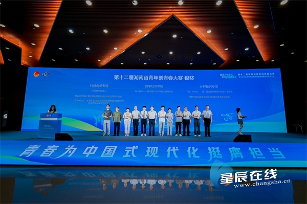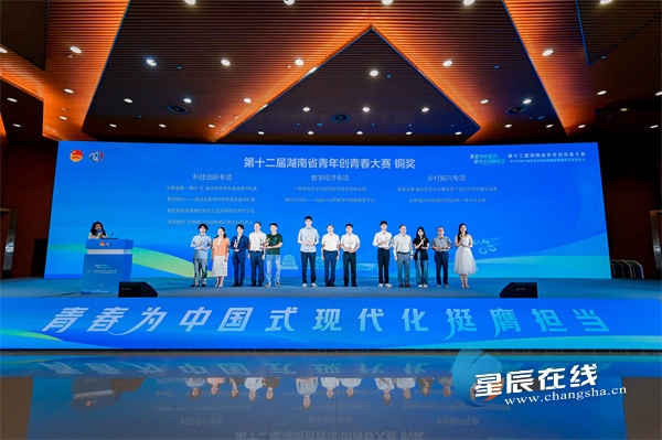 (第十二届湖南省青年创青春大赛金奖颁奖现场。)