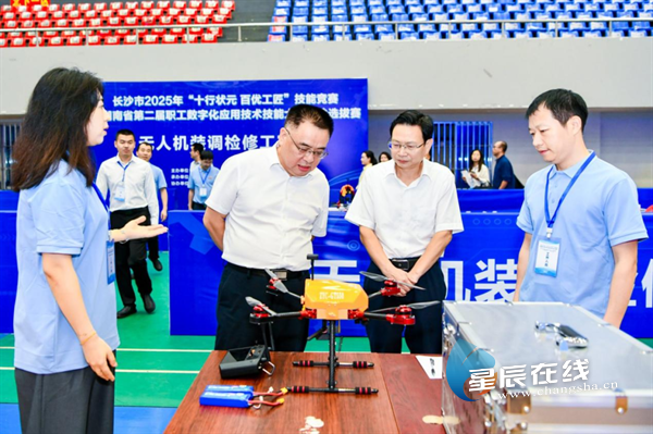 星辰在线9月20日讯(星辰全媒体记者 阙胜瑶)9月19日,由长沙市总工会主办的长沙市2025年“十行状元 百优工匠”技能竞赛暨湖南省第二届职工数字化应用技术技能大赛长沙选拔赛正式启动。本次大赛以“智赋万企 技创未来”为主题,聚焦工业机器人系统运维员、无人机装调检修工、数据安全管理员等多个前沿赛项,覆盖数字化、智能化、绿色化领域,既是长沙职工技能水平的“集中检阅”,更是推动技能人才培育、服务产业升级的重要实践。市总工会党组书记、副主席喻志珊宣布竞赛正式启动,市总工会党组成员、经费审查委员会主任向欣致辞,湖南开放大学党委委员、副校长陈志国致欢迎词。