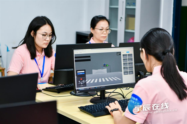 (人工智能训练师(女职工)团体赛赛前实训。图片由 长沙市总工会 提供)