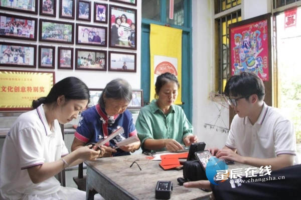 “湘信”青年走进黄杏奶奶的家,听老人家讲述学习剪纸的经历,讲解每一幅作品蕴含的吉祥寓意,并跟着黄杏奶奶学习剪纸技艺。同学们在领略非遗魅力之时,更是群策群力,在古村百年戏台前搭建起简易直播间,和黄杏奶奶一起传播剪纸文化,助力高椅古村开启数字生活新体验。