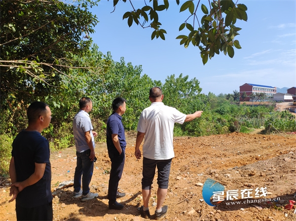 (茶亭镇纪委书记、自然资源和村镇建设事务中心负责人联合实地查看污水管道铺设的施工进度。图片均为 通讯员 提供)
