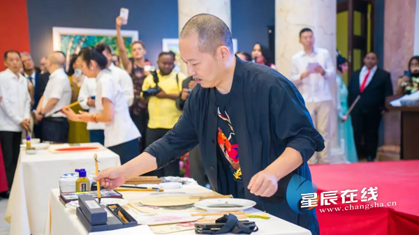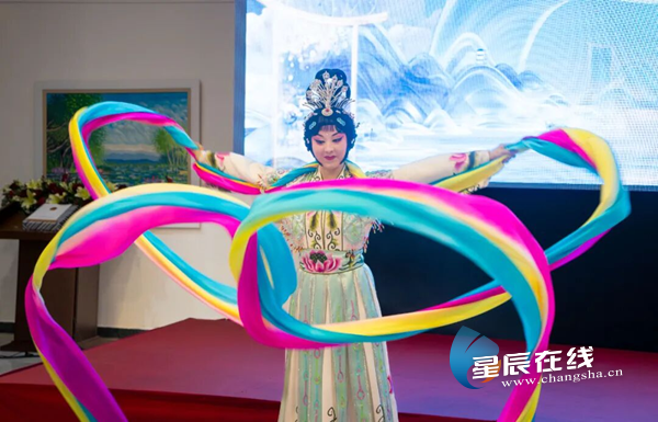此次交流活动致力于体现“传统与现代融合”,以音乐、美术、书法、非遗展示等形式,为当地民众带来沉浸式文化体验。湖南文化交流团第一次将书法、美术与剑舞融合,实现“一动一静”“一文一武”深度融合,第一次将湖湘原创民乐和服饰完美融合。艺术家的倾情演绎,深受当地民众的喜爱,现场反响热烈。