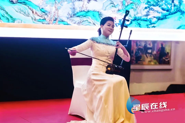 大筒演奏非遗传承人蔡霞带来的大筒独奏曲《渔村夕照》,奏响湖湘“乡音”,她用乐器讲述湖南故事,带领观众在琴声中感受新湖南的山乡巨变。最后,全体模特、艺术家、大使夫妇及到场嘉宾合影留念,定格友好瞬间。