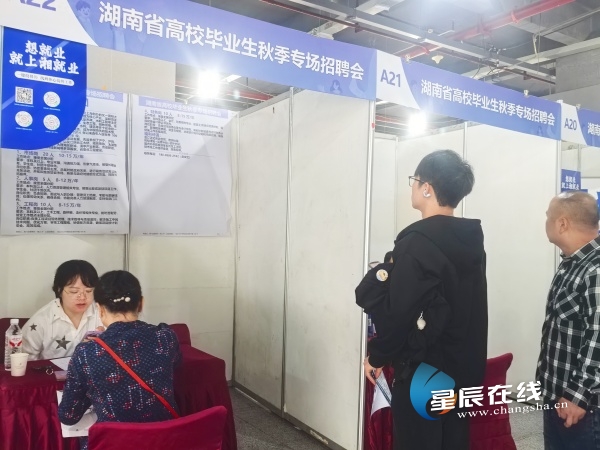 (9月27日,湖南省高校毕业生秋季专场招聘会举行。)