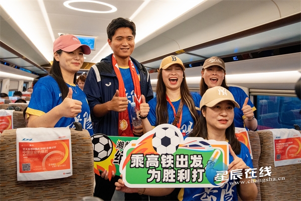 星辰在线9月28日讯(星辰全媒体记者 郭凤湘 通讯员 谢紫芬)9月27日,2025湖南省足球联赛(简称“湘超”)迎来岳阳队客场对阵衡阳队的焦点战。当天16点15分,G6171次列车载着300余名岳阳球迷从岳阳东站缓缓驶出,前往衡阳观赛,赛后,他们还将集体搭乘G9622次返程专列列车返回岳阳。据悉,这是长沙南站首次为湘超联赛定制开行球迷专列,旨在让球迷出行更便捷、观赛更舒畅。
