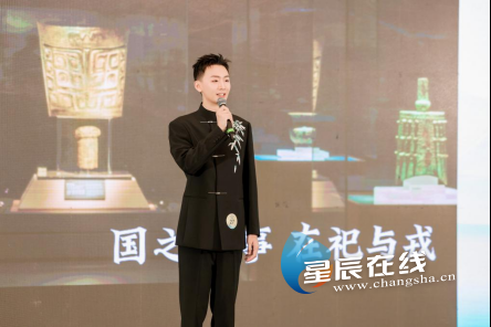 本次总决赛的舞台上,他以《三千年的回响——象纹大铜铙》为主题,生动讲述象纹大铜铙背后的故事,并巧妙将其转化为富有张力的演绎表达,与“寻长沙”演绎空间深度联结,让沉睡的故事在这片场域中苏醒流转,成为触碰人心的鲜活表达。
