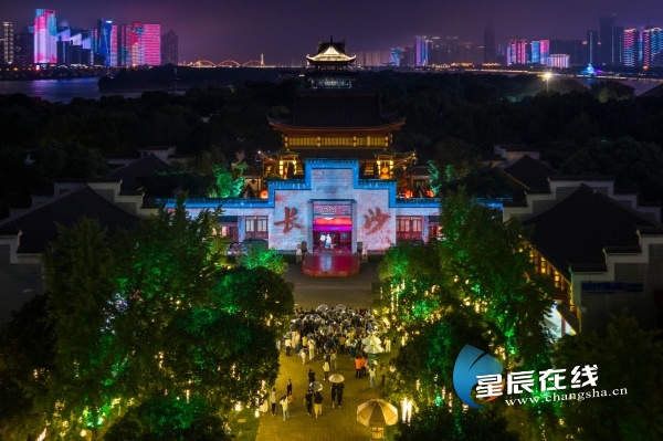 (9月30日,由华夏芙蓉文旅倾力打造的光影大剧《花开橘洲·江天暮雪》将在橘子洲江天暮雪文化园首演。)