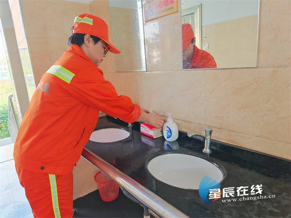 星辰在线10月2日讯(星辰全媒体记者 周子豪)清晨的第一束日光落在瓷砖上,水痕被拖把轻轻带走,空气里是淡淡的消毒水味,雨花区圭塘片区的一处公厕里,雨花环卫圭塘环卫所副所长裴志强正和机动保洁员做着节前最后一次确认:地面要干、把手要亮、洗手液要满。“假期我们实行‘专人专岗+动态补位’,全域覆盖保洁、耗材补给、设施巡检和应急处置。9点到18点是高峰,我会再增派1—2名机动保洁员,哪里人多就往哪里顶。”他一边说,一边把防滑地垫再往里压了压。