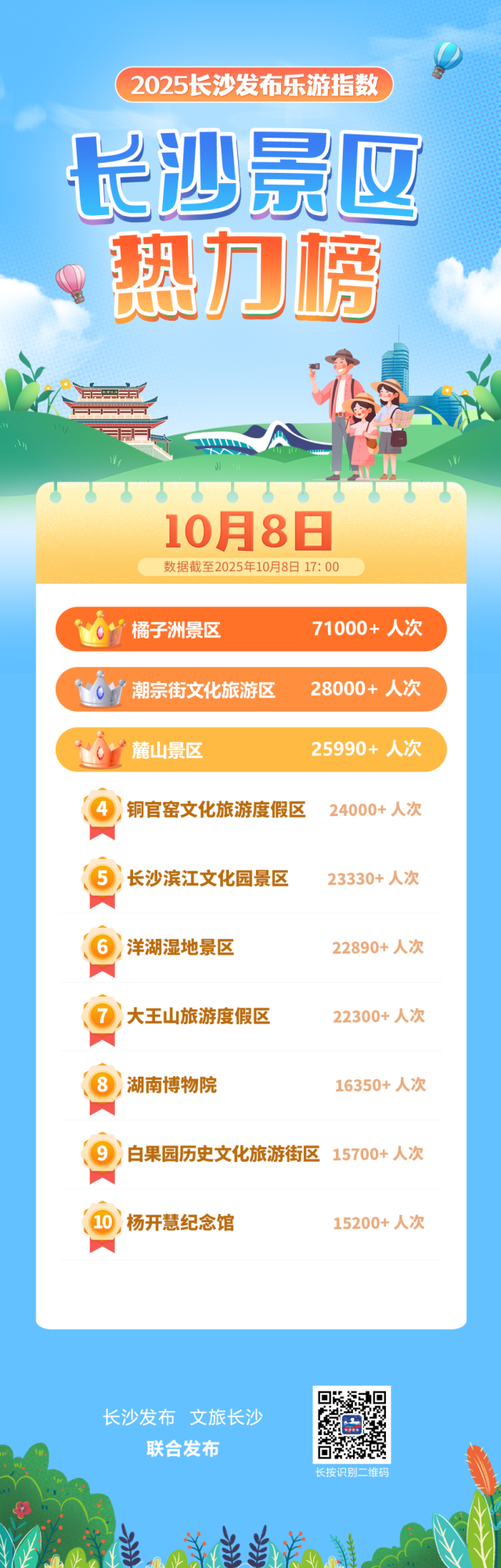 (本期热力榜的数据由各区县(市)文旅局、景区景点提供,统计时段为10月7日17:00-10月8日17:00)