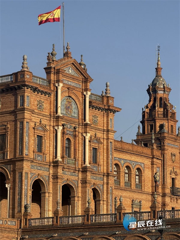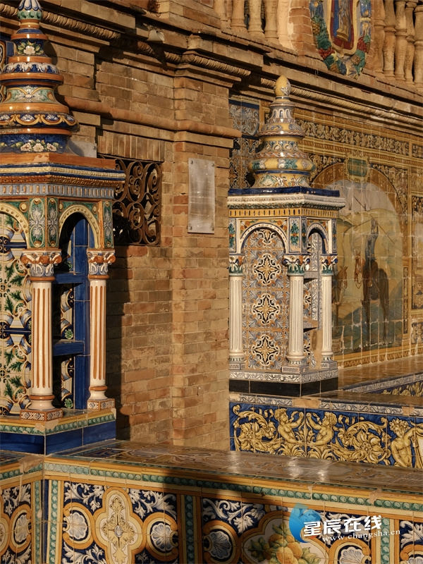 它巧妙融合了文艺复兴、摩尔复兴与新穆德哈尔风格,以半圆形布局象征西班牙拥抱其前殖民地的历史情怀,两侧延伸着饰有复杂瓷砖浮雕的弧形长廊,每一幅彩绘瓷砖画都诉说着西班牙不同省份的历史与风情。