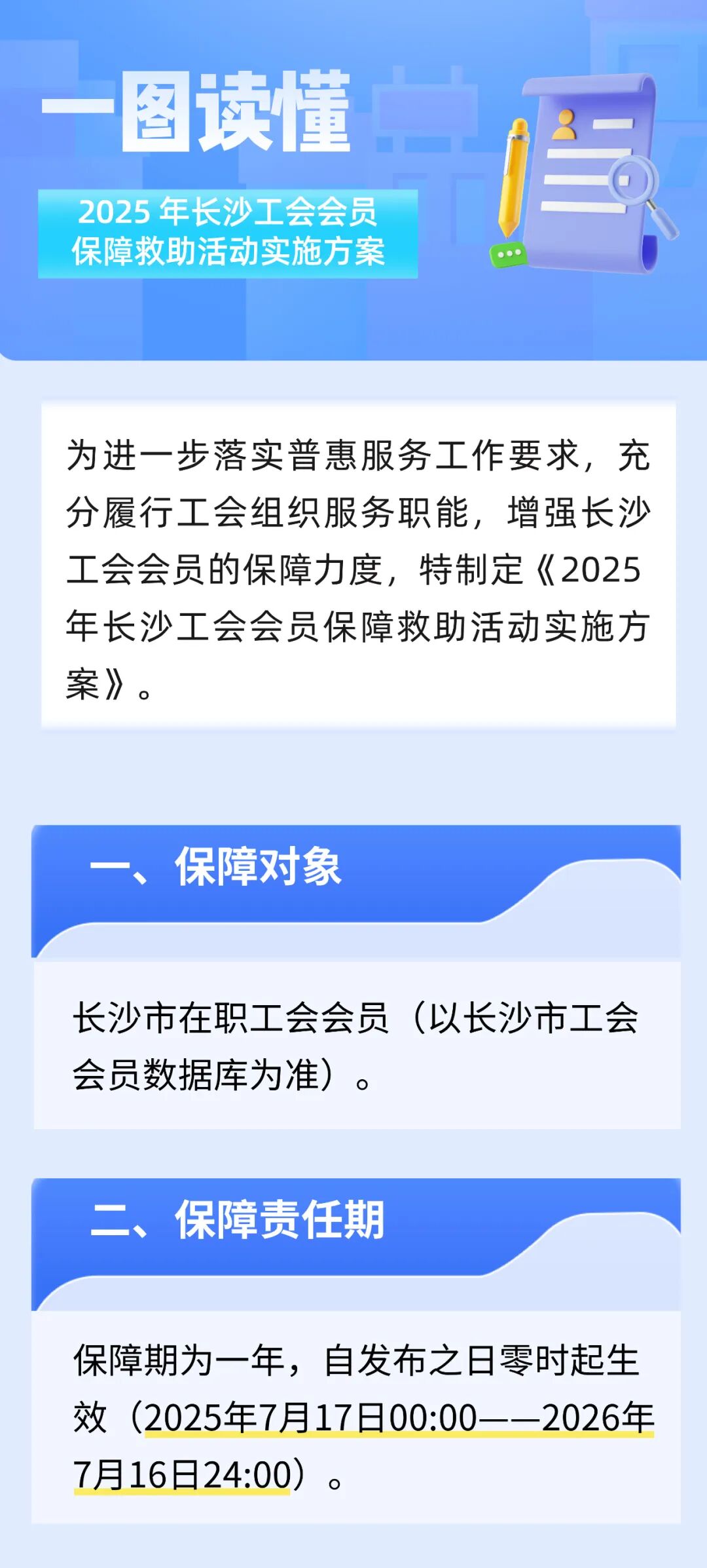 星辰在线10月21日讯(星辰全媒体记者 阙胜瑶)长沙市总工会印发《2025年长沙工会会员保障救助活动实施方案》,为全体工会会员送上暖心保障。这份保障将意外身故、家庭财产(火灾)损失、新就业形态劳动者会员意外医疗等纳入保障范围。