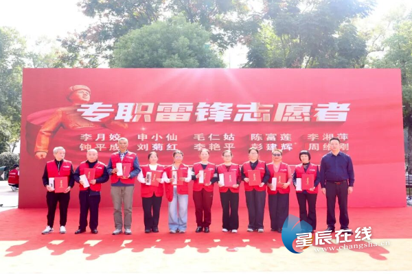 (李月姣、申小仙等十位本年度“专职雷锋志愿者”接受表彰。)