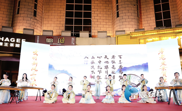 (孩子们以古筝伴奏朗诵《中华孝道》。)