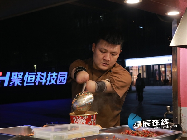 长沙,曾是吴毅创业路上的一场遗憾。2023年,他带着炒饭摊来到长沙,本想在这座城市扎根,却屡屡遭遇挫折:场地不稳定,食材采购要独自奔波,凌晨就要去市场进货;无臂开车往返涟源,每次都提心吊胆。