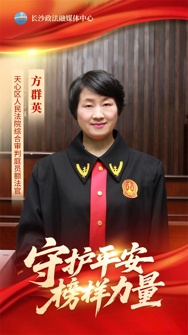 (长沙市天心区人民法院综合审判庭员额法官方群英。范立明 设计)