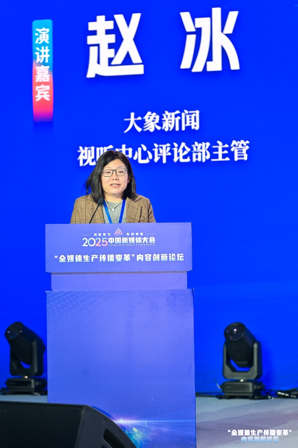 11月12日下午,2025中国新媒体大会“全媒体生产传播变革”内容创新论坛在长沙举办。在“破圈之声”创作者说环节,大象新闻视听中心评论部主管赵冰带来演讲分享《一碗面条的创作启示:从 “蹭饭书记” 爆火看新媒体的真实回归》,以下是内容全文: