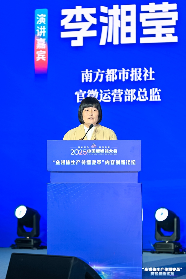 11月12日下午,2025中国新媒体大会“全媒体生产传播变革”内容创新论坛在长沙举办。在“这些账号很吸粉”交流环节,南方都市报社官微运营部总监李湘莹带来演讲分享《抓情绪 找差异 造IP》,以下是内容全文: