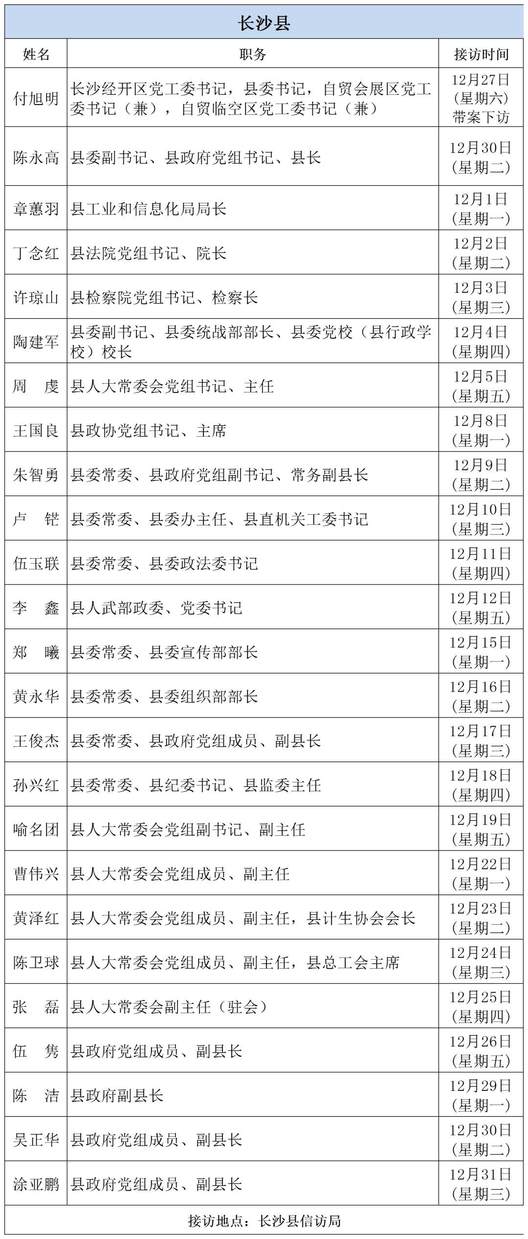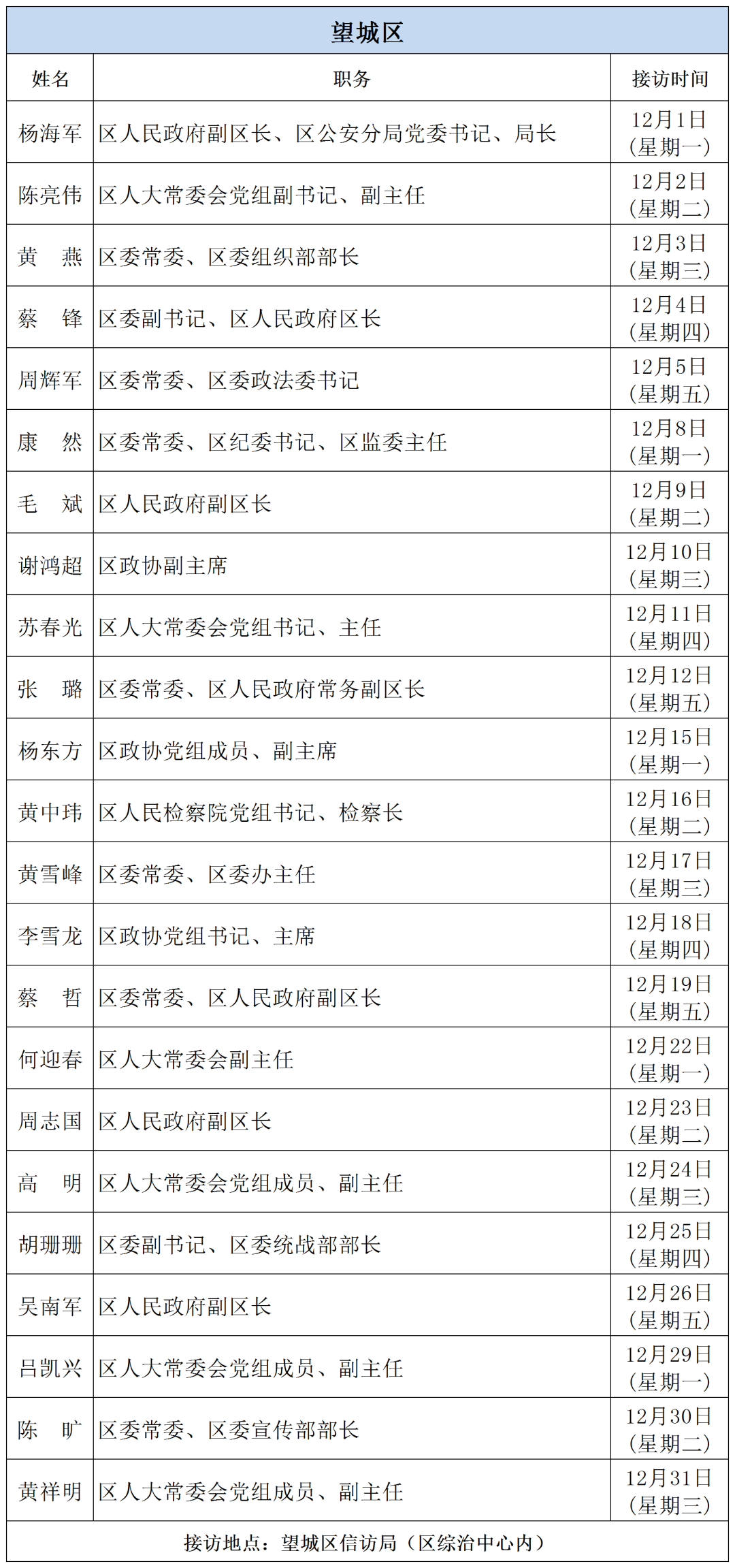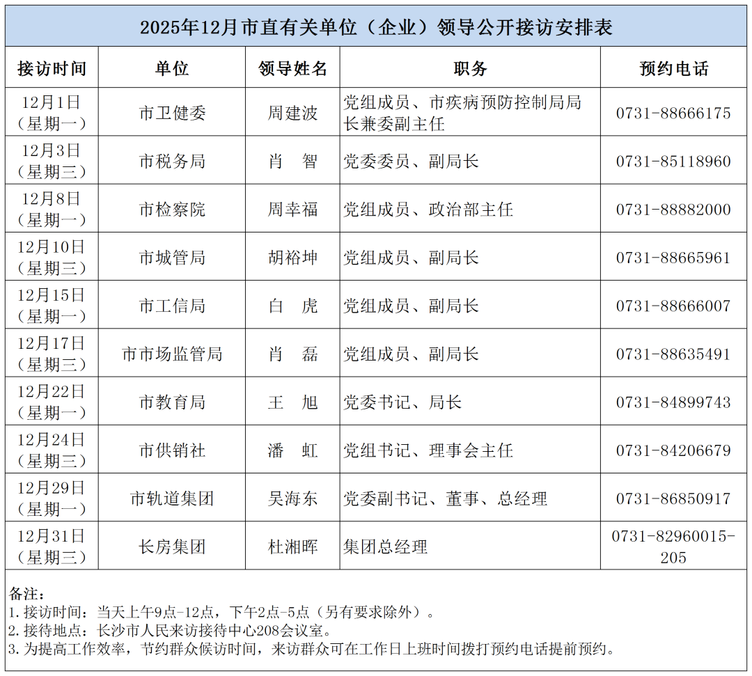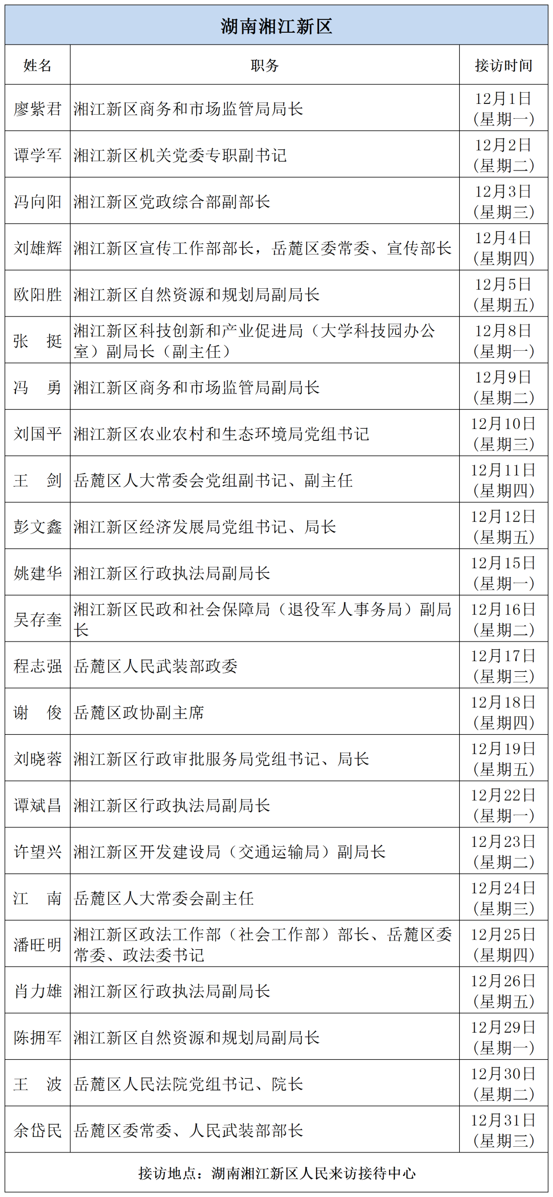 公告 | 2025年12月份湖南湘江新区、各区县(市)及相关市直单位(企业)领导接访安排