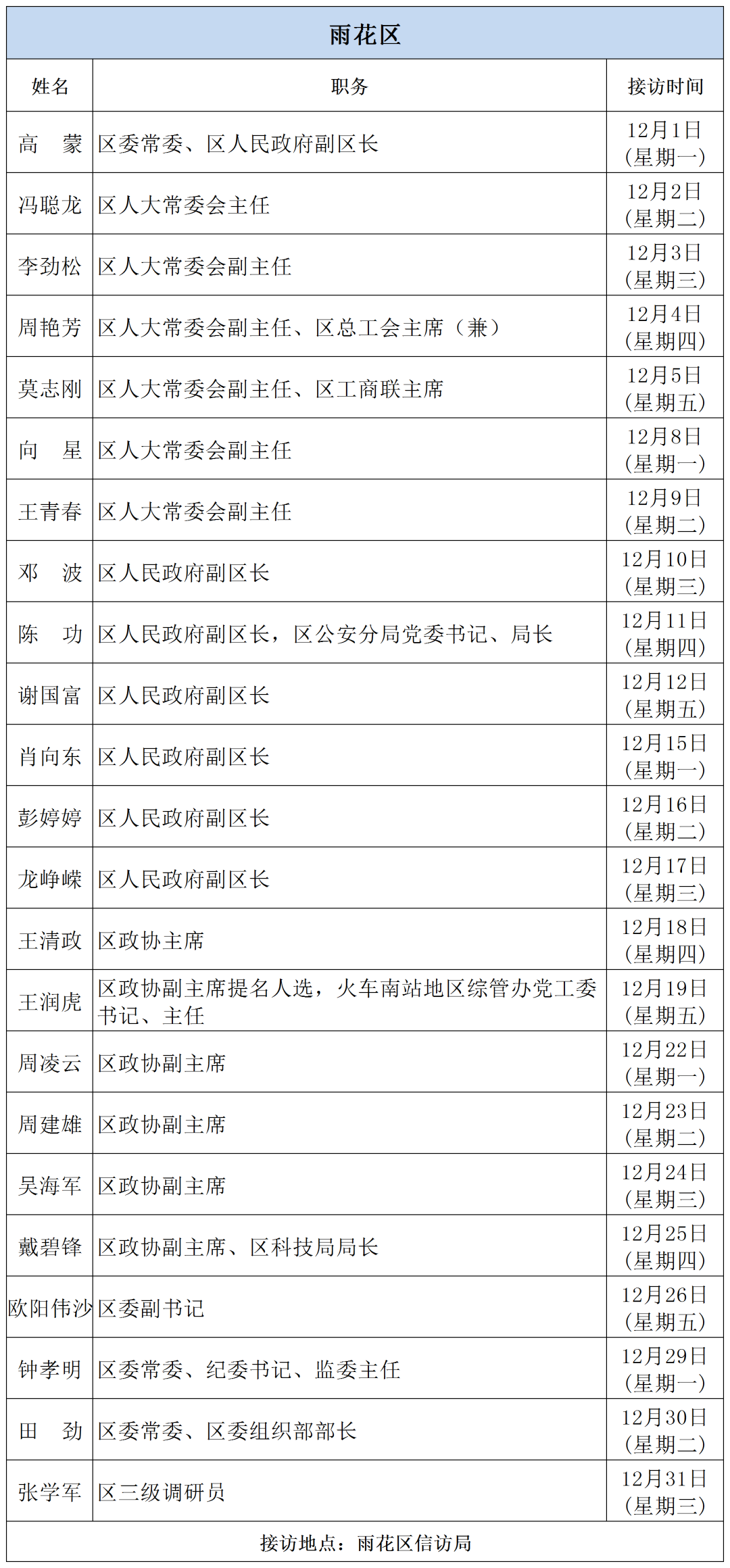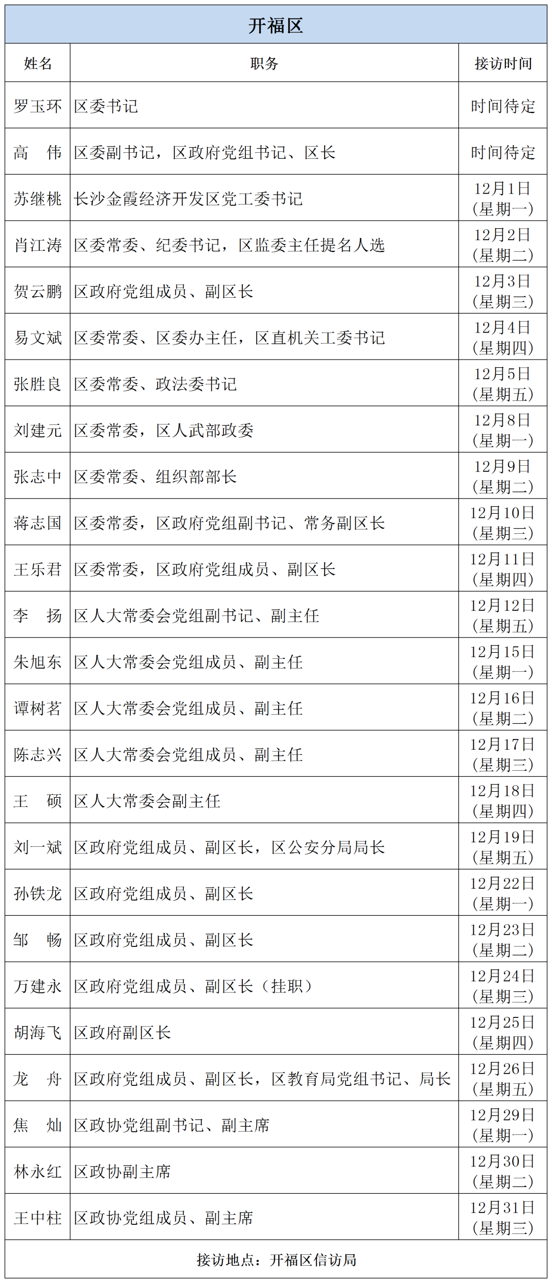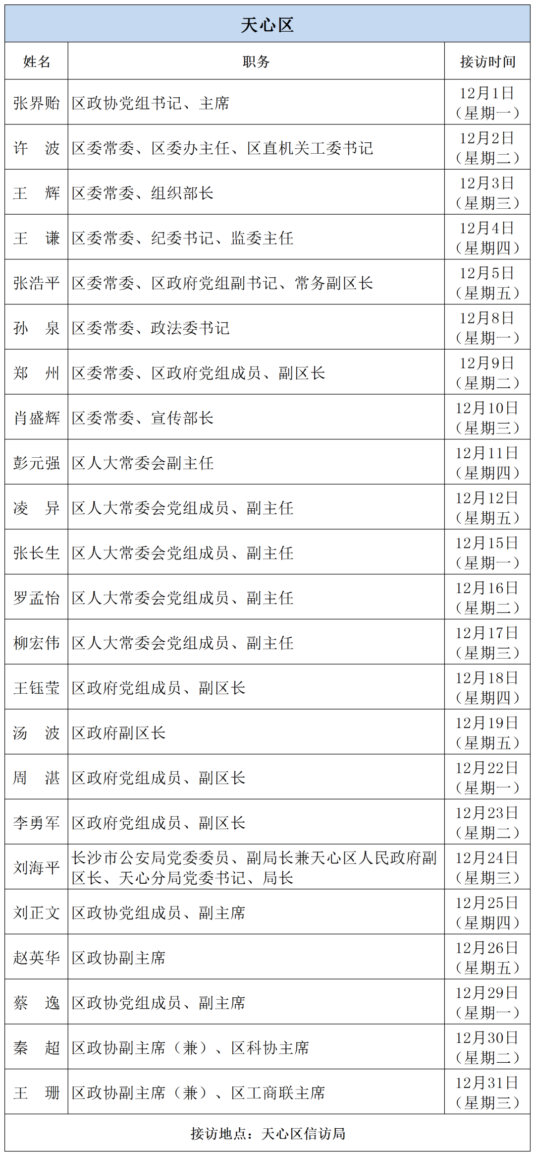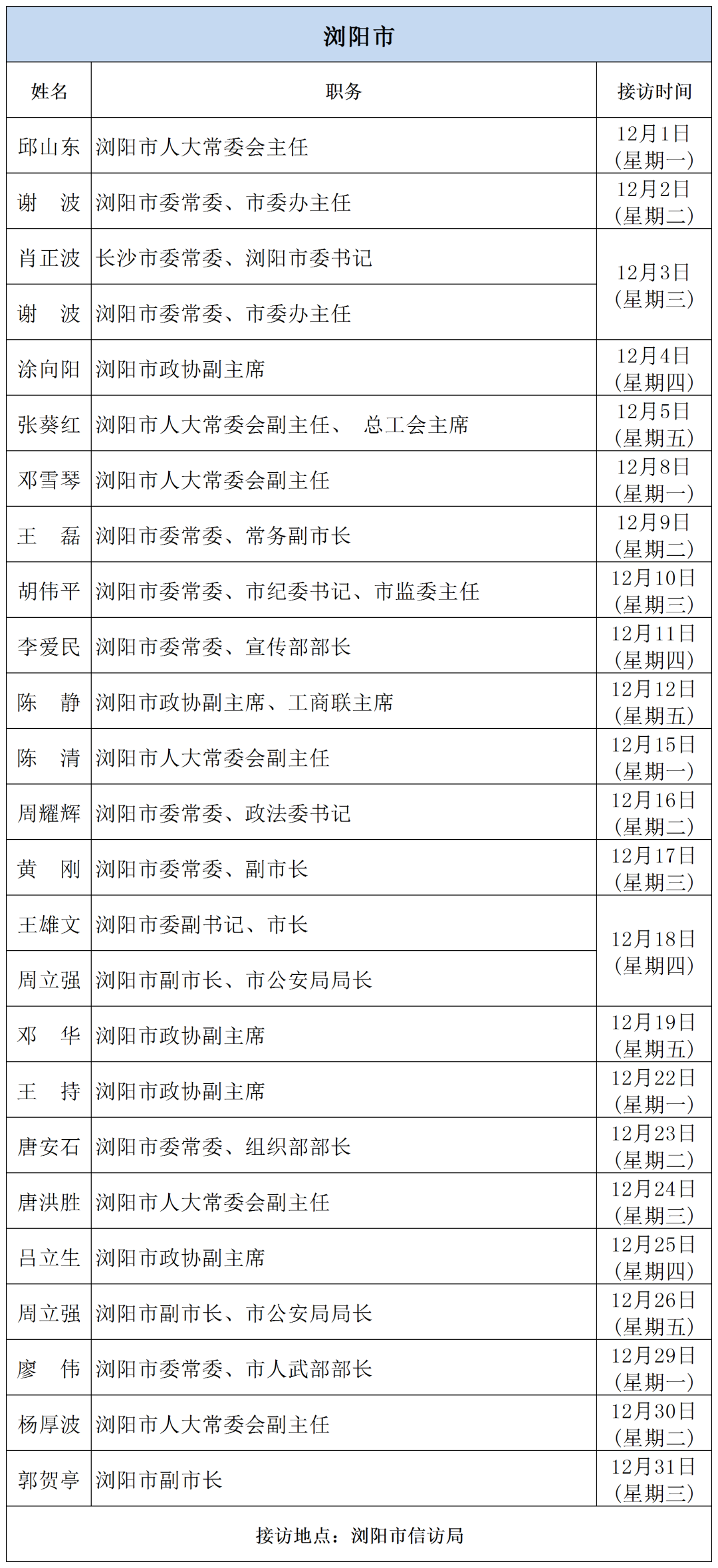 公告 | 2025年12月份湖南湘江新区、各区县(市)及相关市直单位(企业)领导接访安排
