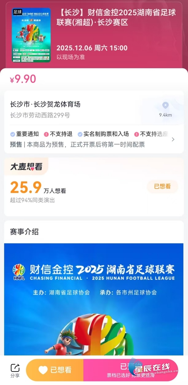 25.9万人蹲守开票!湘超收官战长沙对决常德 贺龙体育场将迎巅峰对决
