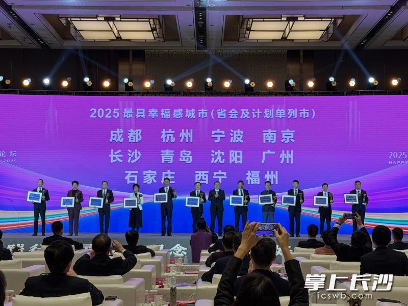 星辰在线12月9日讯 据长沙晚报掌上长沙(特派全媒体记者 刘俊)报道,12月9日,由《瞭望东方周刊》主办的“2025幸福城市论坛”在成都举行,现场发布“2025最具幸福感城市”榜单,长沙再次获评“最具幸福感城市”,长沙已连续18年摘得这一荣誉,副市长钱丽霞代表长沙在“2025幸福城市论坛”上作主旨发言。长沙县、浏阳市、宁乡市获评“2025最具幸福感城市(县级市)”。
