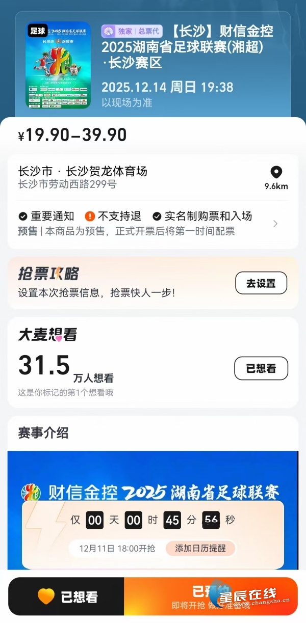 31万人预约抢票!湘超八强战长沙主场迎战岳阳,观赛攻略请收好