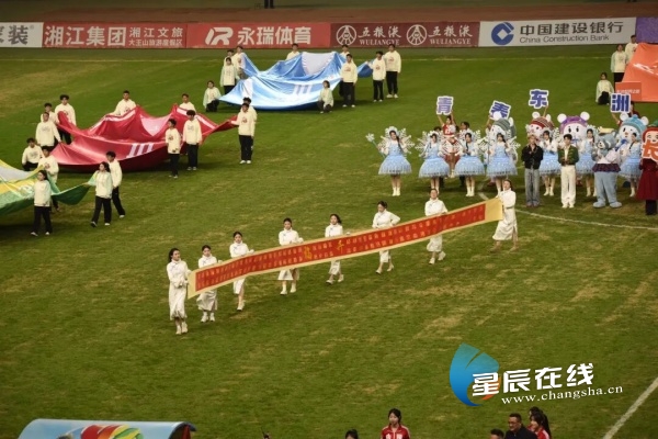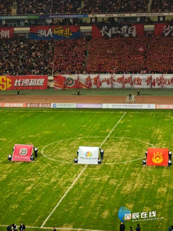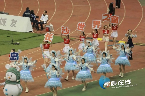星辰在线12月14日讯(星辰全媒体记者 曹珊珊)谁说看球只能喊加油?12月14日,湘超联赛长沙主场变身“潮玩现场”!在长沙对阵岳阳的赛前,“潮聚开福·湘超燃雪”暖场活动让贺龙体育场提前沸腾。这里不仅有足球的热血,更有冰雪的浪漫、非遗的匠心与全城的文旅福利。