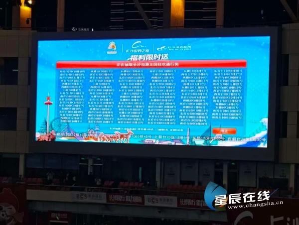 (中场休息时,长沙世界之窗、海底世界、动趣王国三大景区接力抽奖,共送出近200张门票。)