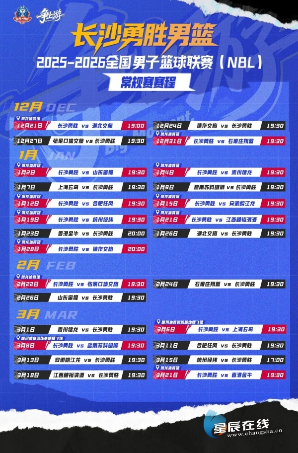 (新赛季常规赛赛程。以上图片均由 长沙勇胜俱乐部 提供)