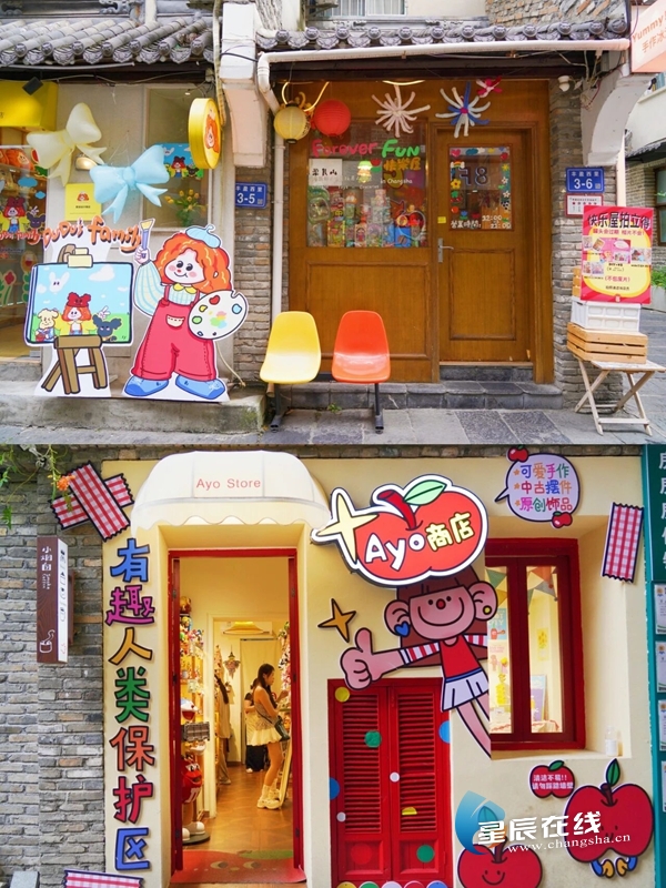 经改造的古巷早已成为长沙的文旅新地标。步入巷中,琳琅满目的店铺会让你慢慢放下匆匆的步履,各色文艺小店为古朴的老街注入了现代活力,每一家店都带着自己的巧思,“多巴胺美学”式装潢让整个街道变得鲜活而趣味十足。