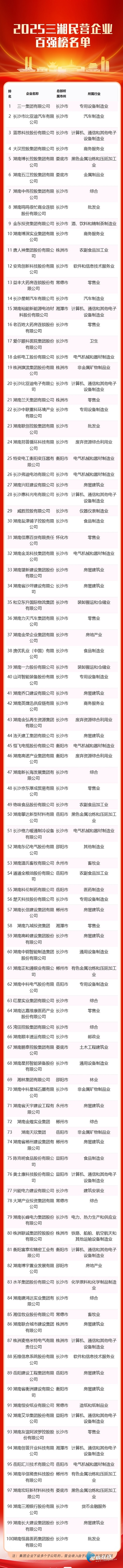今年4月开始,湖南省工商联对全省2024年度营业收入超过5亿元的上规模民营企业进行调研,以年营业收入为主要参考指标,经审核审议后最终形成2025三湘民营企业百强正式榜单。