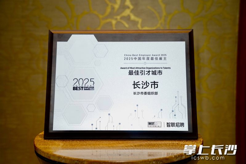 12月19日,海南三亚,2025中国年度最佳雇主颁奖盛典公布评选结果,长沙从众多城市中脱颖而出,荣膺“中国年度最佳引才城市”。