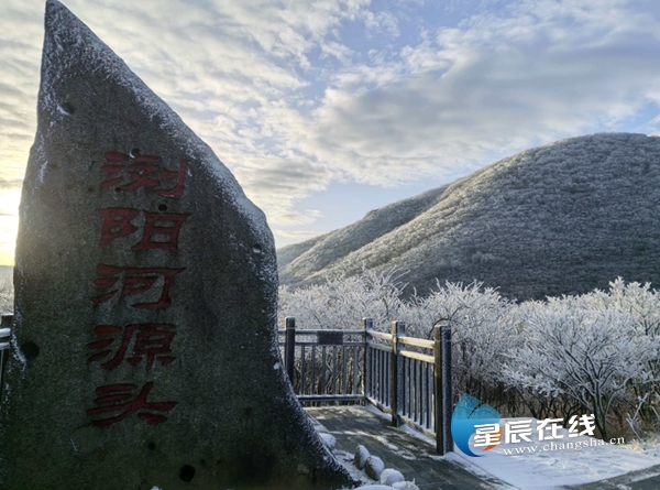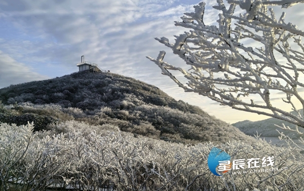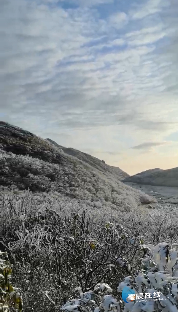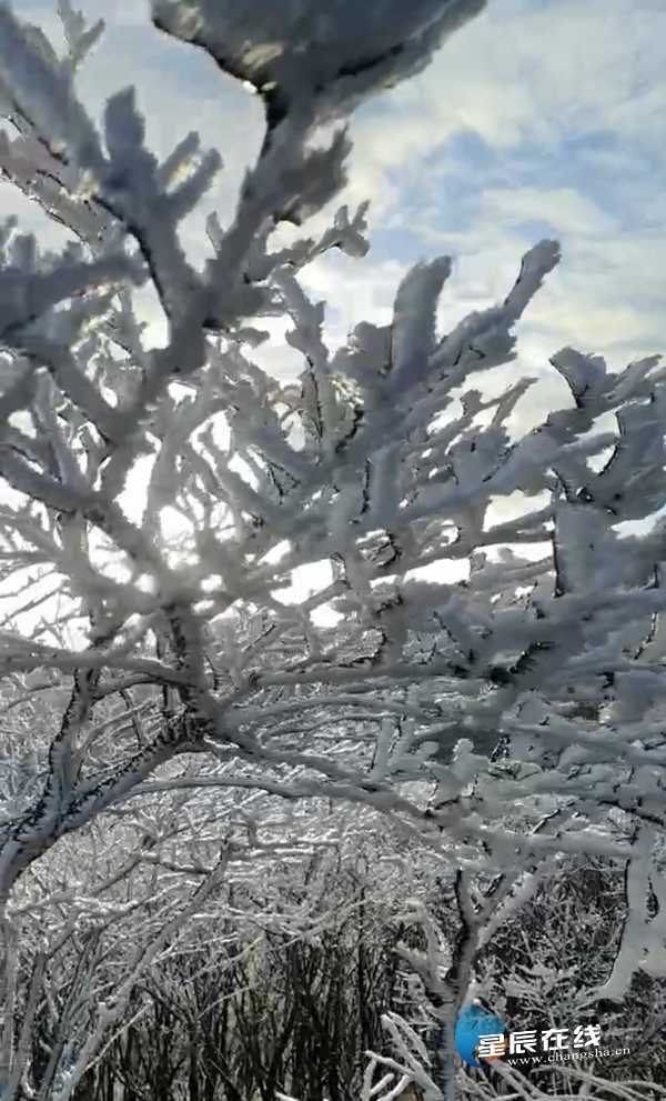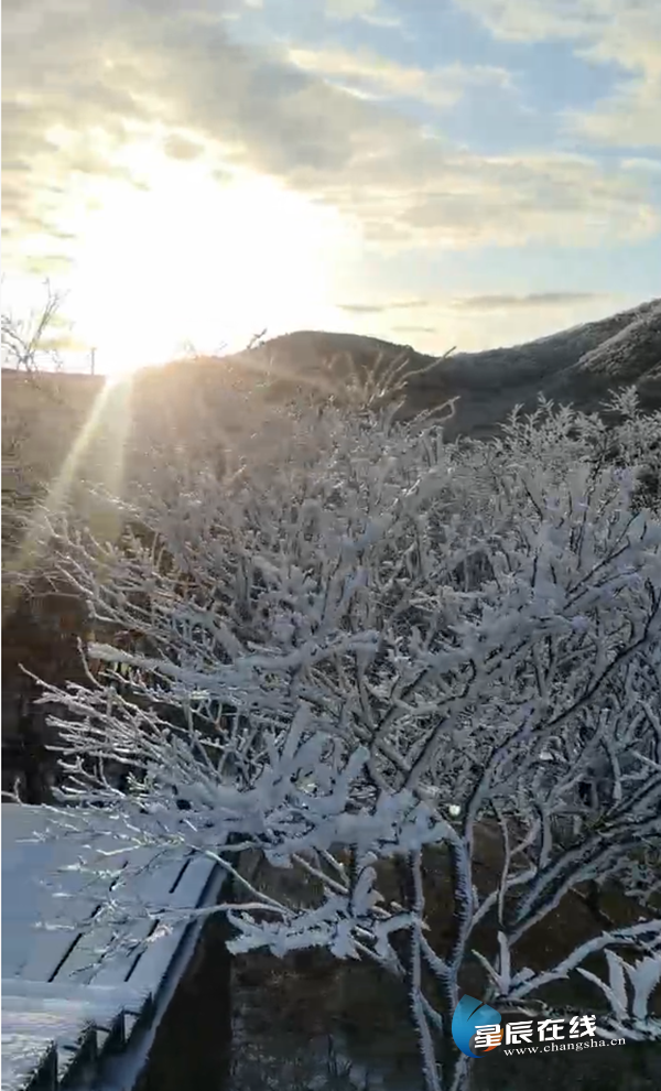 在银装素裹下,大围山国家森林公园也迎来了雾凇。冰晶凝于树梢头,在朦胧的雪幕中若隐若现,宛如玉树琼花。今天早上,太阳出来了,雪与雾凇相拥,一个灵动活泼,一个静谧优雅,共同绘就了大围山国家森林公园的冰雪画卷。