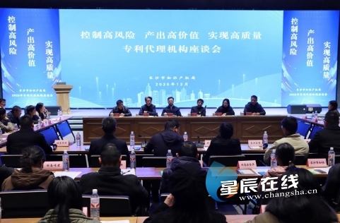 星辰在线12月26日讯(星辰全媒体记者 彭穗 刘星雨)12月25日,长沙市知识产权局举行2025年专利代理机构座谈会。湖南省知识产权局知识产权促进处处长周卫,市知识产权局党组书记、局长侯向宇出席并讲话,局党组成员、副局长吴宏亮主持会议。全市知识产权系统及专利代理机构相关负责人等百余人参会,共商行业高质量发展蓝图。