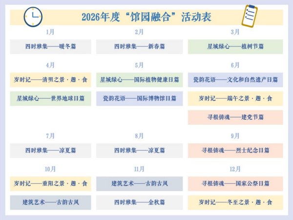 星辰在线12月26日讯(星辰全媒体记者 李政伦)记者今日从湖南烈士公园管理处获悉,为深入整合馆园特色资源,更好发挥“1+1>2”的社会效益放大器作用,打造“文化+生态”的沉浸式教育体验,提升湖南烈士公园与湖南省博物馆各项资源的社会服务效能,助推“馆园融合”在空间融通、资源融汇、业态融合上落到实处,2026年“馆园融合”系列教育活动计划正式对外发布。
