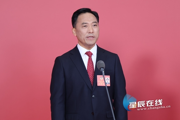 (长沙市政协委员,长沙市民族宗教事务局党组书记、局长杨光华接受记者提问。图片由 星辰全媒体记者 李政伦 摄。)