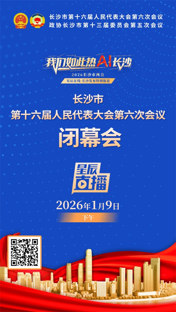 星辰在线1月8日讯(星辰全媒体记者 郭凤湘)长沙市第十六届人民代表大会第六次会议闭幕会将于1月9日下午举行。整场闭幕会,星辰在线、长沙发布将全程进行现场直播,欢迎广大网友准时收看。