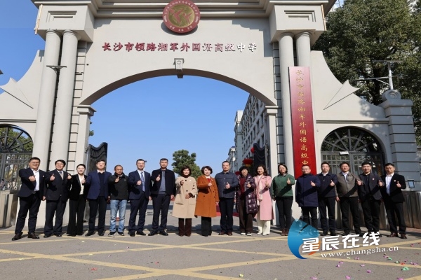 (1月10日,长沙市领路湘军外国语高级中学举行新校名揭牌仪式。)