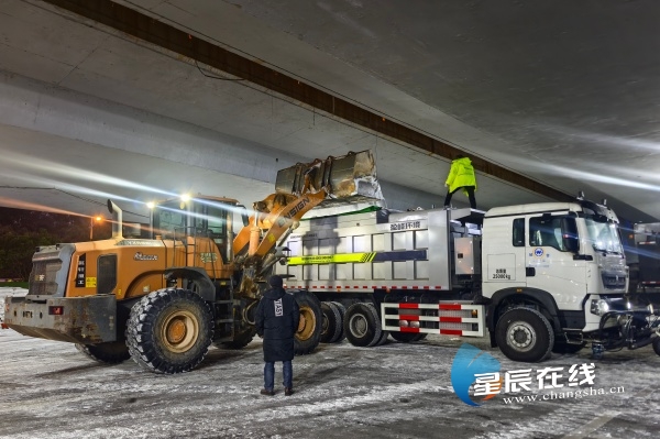 寒夜守护路桥安 开福环卫连续奋战除冰保畅通