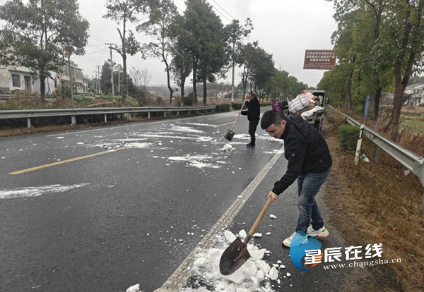 镇生态事务中心连夜调集3吨融雪盐,对易结冰路段撒盐除冰,清理15公里易滑路段,保障干道畅通;交警黄花中队全员值守,重点路段设警示、疏车流、劝违规,寒风中提醒司机减速控距,严守道路安全。