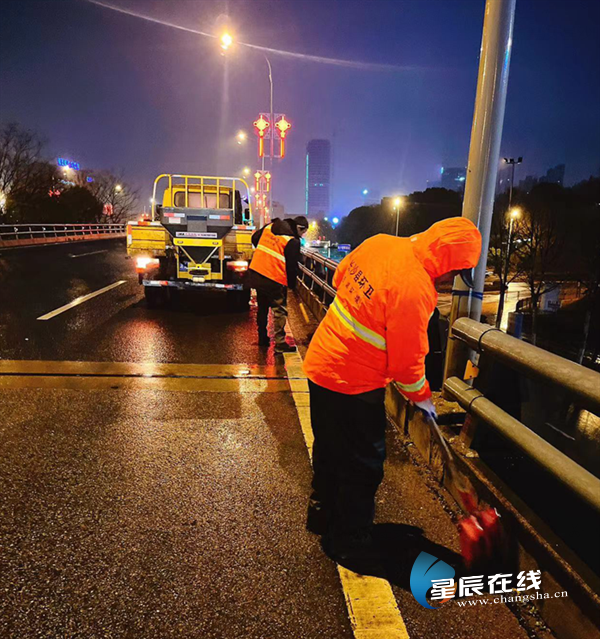 为有效抵御低温雨雪冰冻灾害天气,长沙县城管局组织干部职工及维护公司人员通宵值守、一线作业,以实打实的行动守护城市正常运行和市民出行安全。