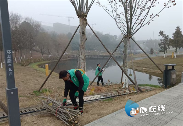 为应对低温雨雪天气对植被的影响,绿化养护团队全员出动,为树木加装支撑架,防止积雪压断枝条。同时,安排专人巡查,及时清理倒伏或断裂的树木,全力保障道路畅通和游客安全。