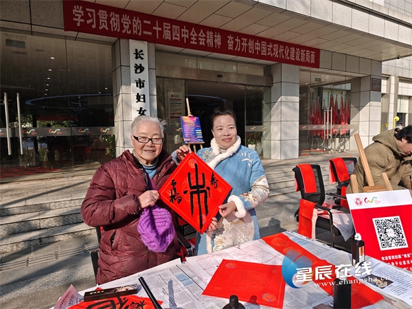 星辰在线1月24日讯(星辰全媒体记者 彭穗 通讯员 曾珠)红纸翻飞剪出吉祥图案,墨香流淌书写新春祝福。1月23日至24日,由长沙市妇女联合会指导、长沙市妇女儿童发展基金会主办的“家庭友好”非遗体验暨新春送温暖活动在市妇联一楼前坪温情上演。活动以“零门槛、直接领”的公益形式,将非遗魅力与浓浓年味送至市民手中,吸引了众多周边社区居民、家庭及传统文化爱好者参与,现场洋溢着喜庆祥和的节日氛围。