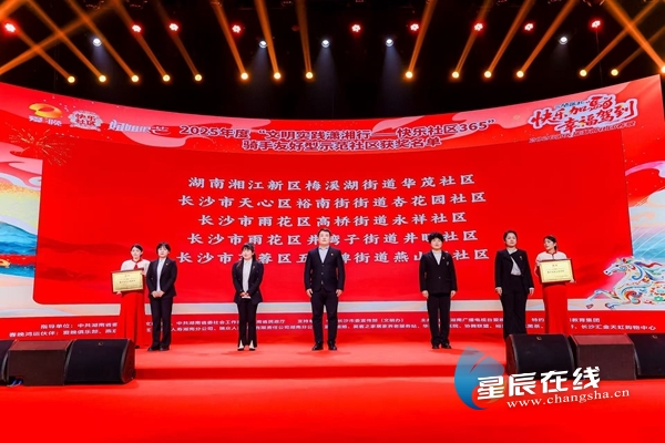 星辰在线1月28日讯(星辰全媒体记者 晨星)1月27日,由中共湖南省委宣传部(文明办)、中共湖南省委社会工作部、湖南省民政厅全程指导,中共长沙市委宣传部(文明办)大力支持,湖南广播电视台爱晚频道主办的“快乐加‘马’·幸福驾到”——2026第五届湖南社区春晚成功举办,整场晚会有全省的数十支优秀文艺团队,超百余家社区参与。据了解,本届社区春晚将于2月17日(大年初一)晚黄金时段在湖南爱晚频道、芒果TV双平台播出。
