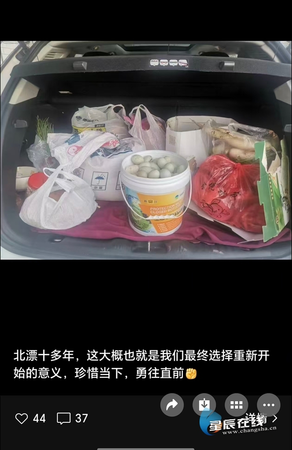 “长沙的周末不再只是补觉,而是和节奏相近的新朋友一起骑行、爬山、逛公园、寻觅美食。每隔两周就开车回一趟岳阳或湘阴,返程时后备箱总是被父母塞得满满当当——蔬菜、腊肉、当季水果,都是家的味道。”彭燕说。