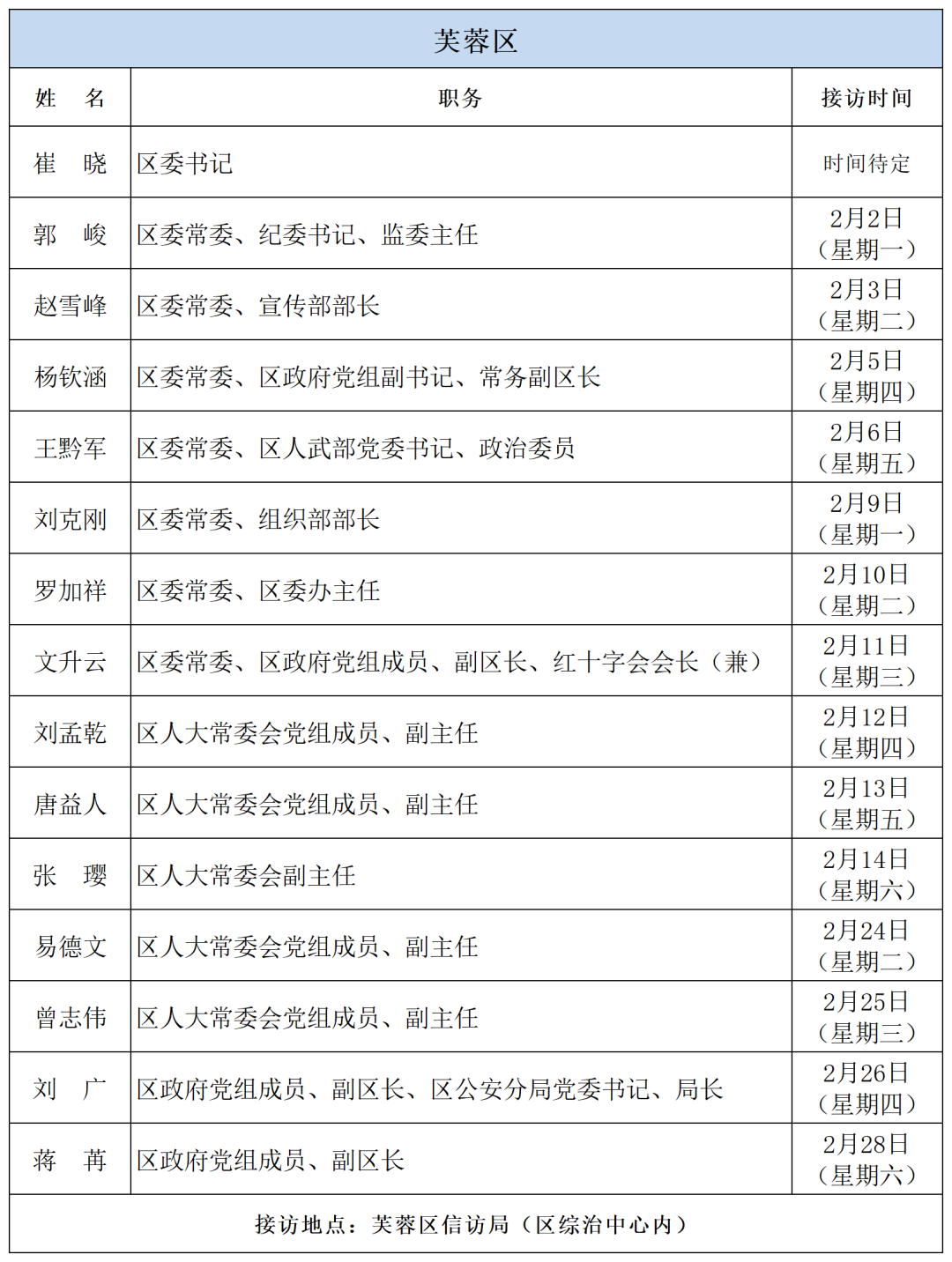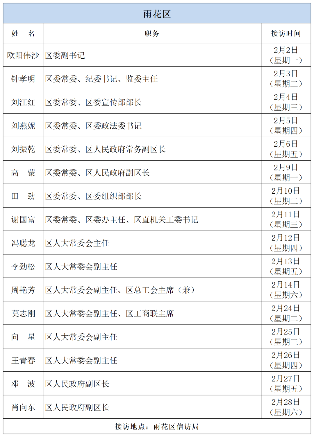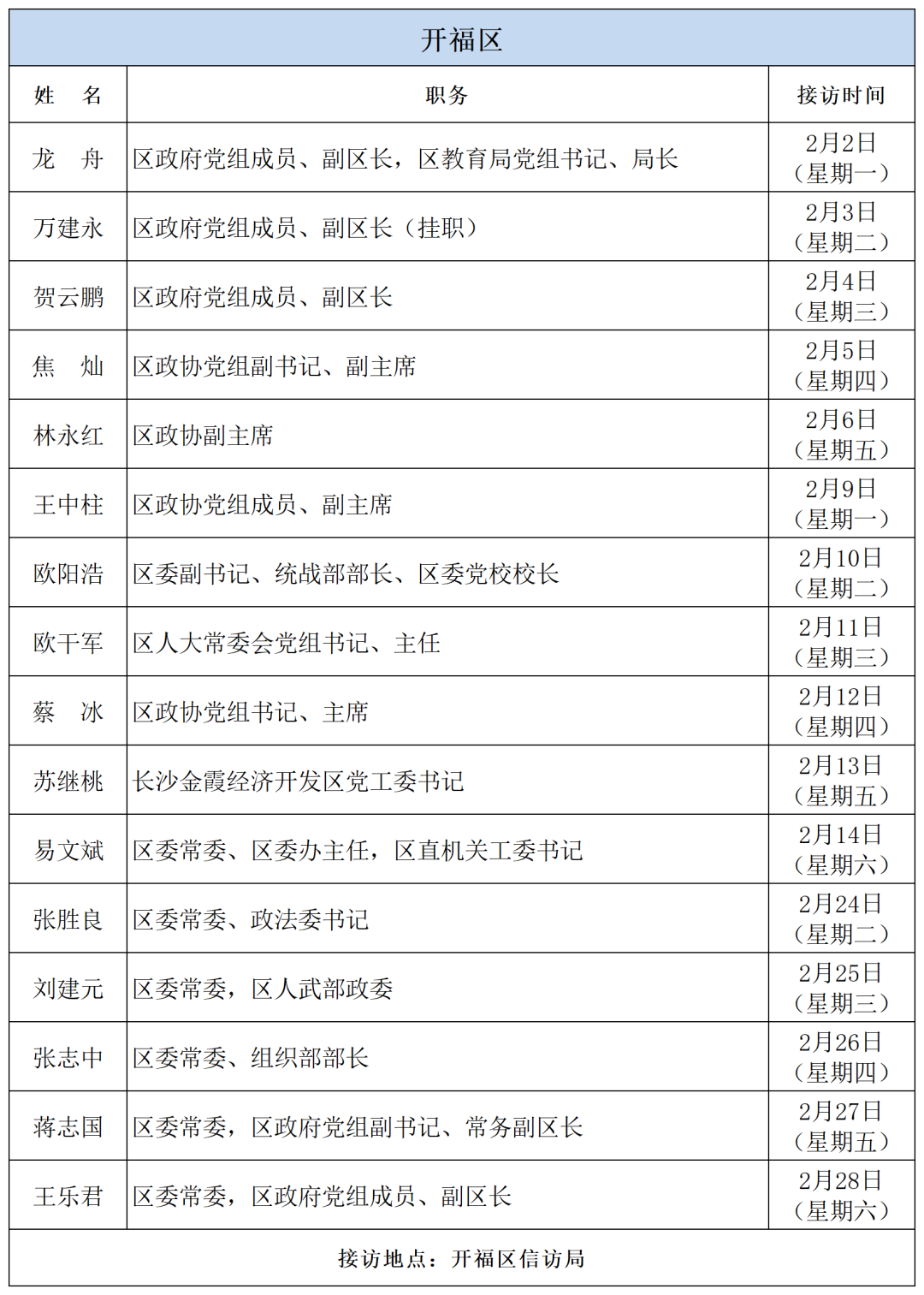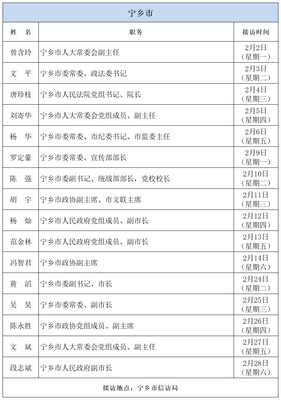 公告 | 2026年2月湖南湘江新区、各区县(市)及相关市直单位(企业)领导接访安排